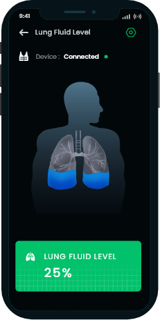 In heart failure, the heart can’t pump enough blood to the body. This causes fluid to back up in different body parts. This fluid back up and fluid changes first start in the lungs. With the lung fluid tracker, we identify the changes in fluid levels at the earliest stage and alert the caregivers to make appropriate changes in medication, fluid and salt intake to manage the fluid levels appropriately.